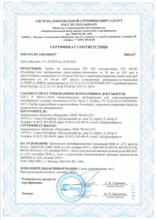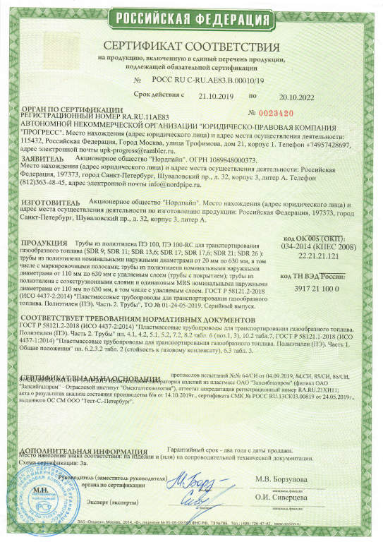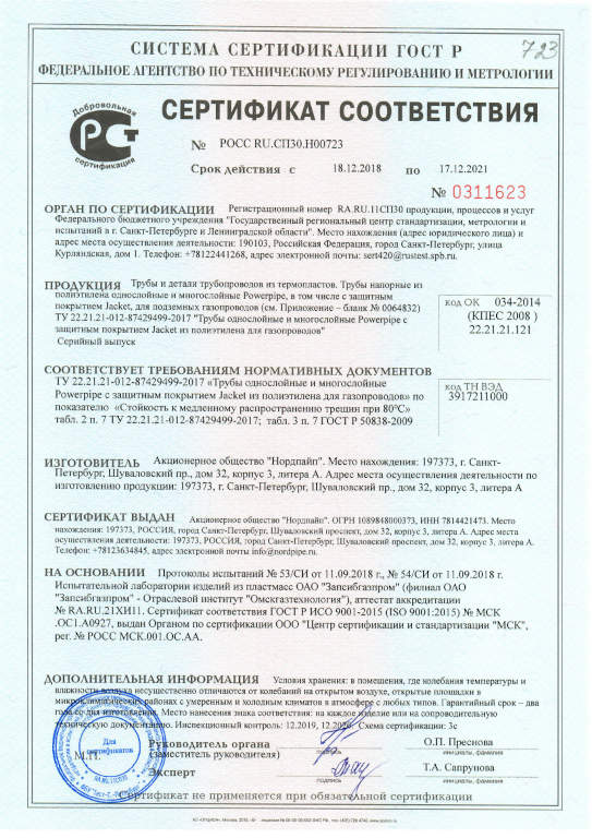 Сертификат соответсвия по ГОСТ Р 58121 2 2018
