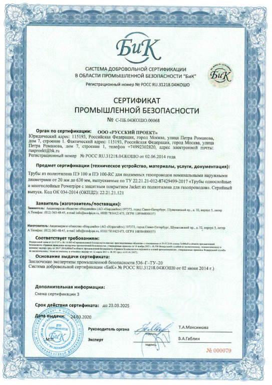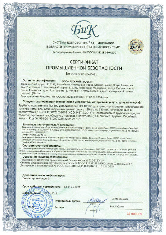 Сертификат промышленной безопасности ГОСТ Р 58121 2 2018